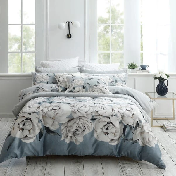 Boasting a bold and elegant floral print, this Avery Green Ava duvet cover set in a modern duck egg colourway adds a stylish touch to your bedroom. On a 200 thread count 100% cotton fabric, this duvet cover set is soft, durable, and machine washable. A coordinating cushion is also available.