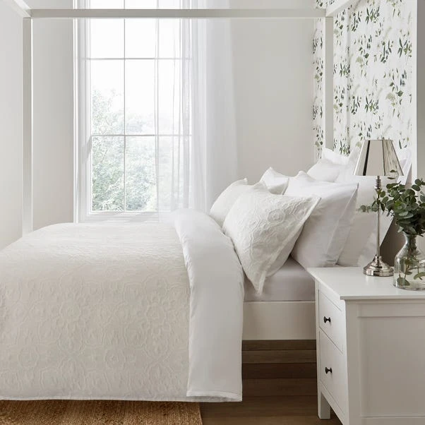 Crafted from a cotton and recycled polyester mix, this soft handled textured bedding created using matelassé weaving techniques for a light and airy comfortable night’s sleep. The duvet cover has been finished with a zipper fastening that secures the cover around the duvet during use. A coordinating pillowcase pair is available in the Dorma Lydia range.