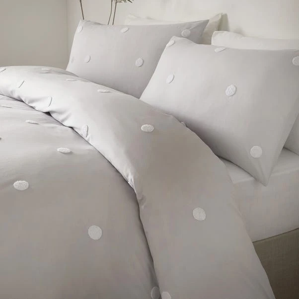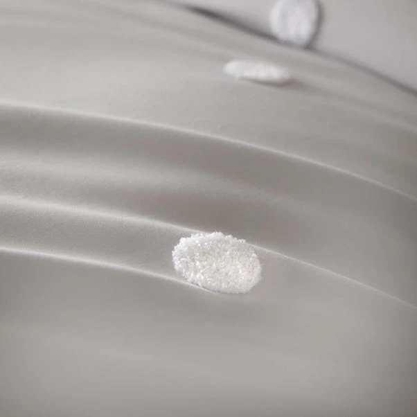 This luxury design features textured polka dots over a contemporary silver grey colourway. Bring a sense of calm into your room and fall into a deep sleep under a sumptuous duvet cover crafted from quality 180 thread count 100% cotton that feels beautifully soft to the touch. Complete with pillowcases for the ultimate relaxtion spot.