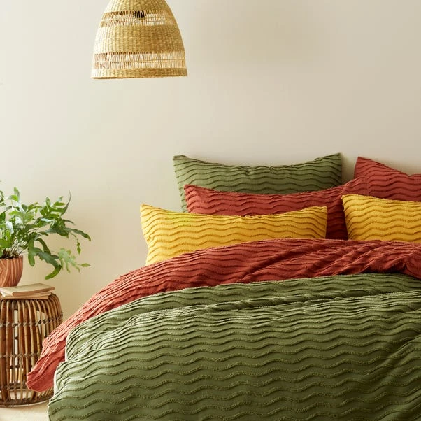 With an on trend modern global feel, featuring tufted waves, this bedding set adds style and texture to any bedroom. Made from beautiful natural and breathable 100% cotton, this bedding is soft and machine washable. This set is available in a range of sizes and other matching bedding is also available.