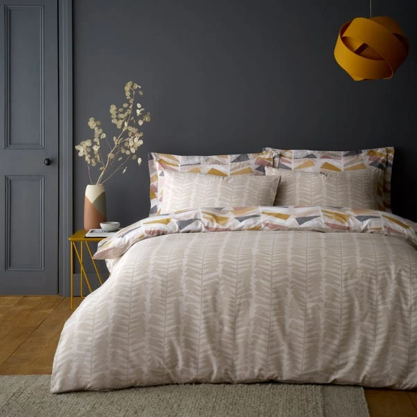 Fancy a pop of colour in your bedroom, or simply want a neutral colourway? Well you can have both with our Axel leaf duvet cover and pillowcase set. This bedding set has been designed in a reversible print, so you can enjoy two different designs and colourways in one, simply flip the duvet cover and pillowcase over when you fancy a change. Made from a soft and durable polycotton blend and finished with a secure button closure for an uninterrupted night sleep.
