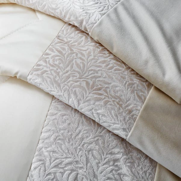 Designed with rich embellishments and a champagne colourway< this duvet cover and pillowcase set will bring a luxurious and glamorous look into your bedroom. Crafted from a polyester material, the set is easy to care for and is fully machine washable. The duvet cover set has been finished with a button closure which helps secure the cover around the duvet whilst in use. For a coordinated look, pair this duvet cover set with the matching Beverley Champagne oxford pillowcase, bedspread and curtains.
