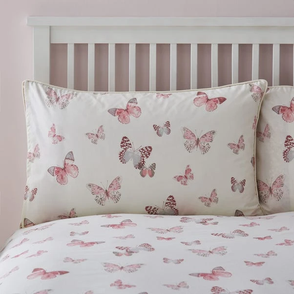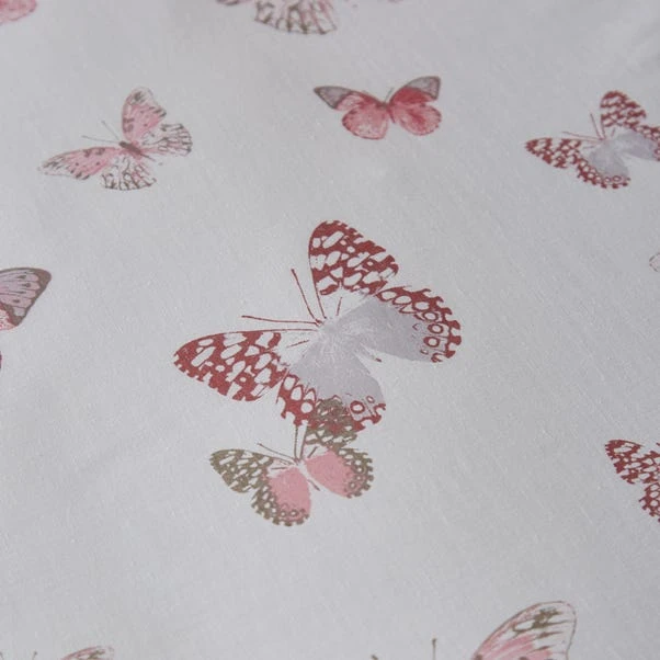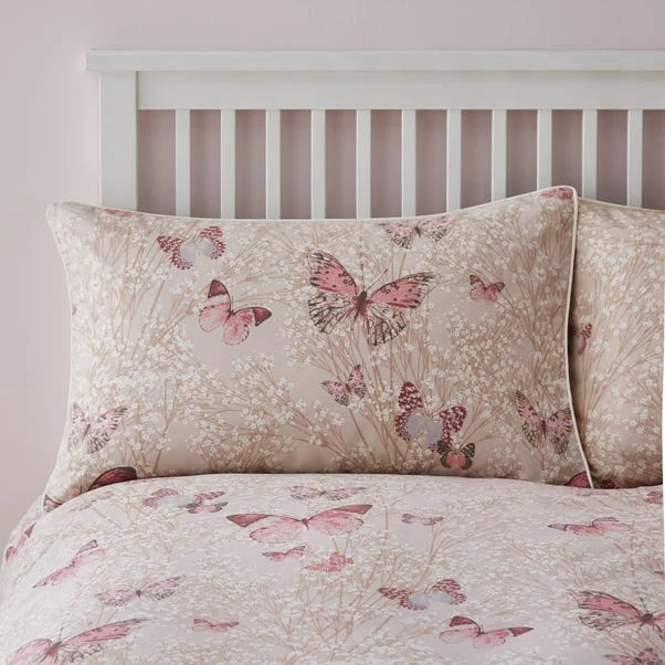 Decorated with a floral and butterfly printed design in soft shades of blush pink and natural, this duvet is reversible, allowing a choice of two different looks. Detailed with piped edging, the duvet is machine washable and easy to care for.