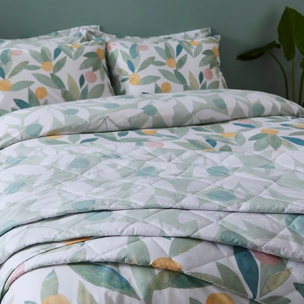 Add a pop of colour to your bedroom this season with this colourful bedspread. The face of this bedspread is adorned with an array of colourful green leaves which will give your bedroom interior a stylish makeover. A reversible muted design allows for a quick style change when desired. Crafted from a polycotton material, the set is easy to care for and is fully machine washable. The bedspread has been finished with a hemmed edge for a neat finish.