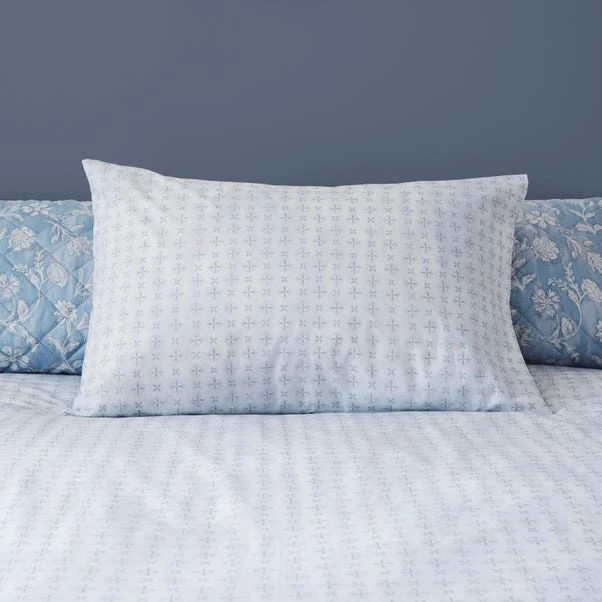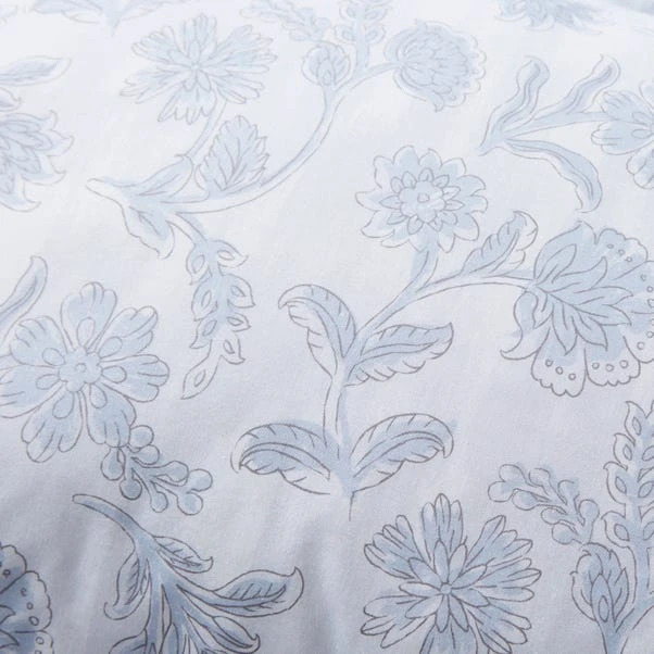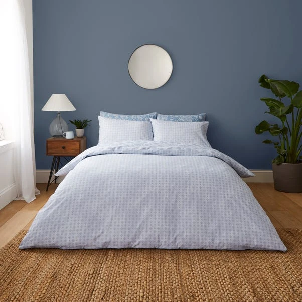 Add a touch of class into your bedroom with this beautiful Mabel duvet cover and pillowcase set. The sketchy floral design has been printed in a soft blue colourway with a geometric print reverse. Crafted from a polycotton material, the set is easy to care for and is fully machine washable. The duvet cover set has been finished with a recycled plastic button closure which helps secure the cover around the duvet whilst in use.