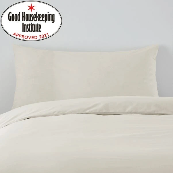 Perfect for a good nights sleep this pillowcase is made from cotton blended with polyester, which creates a fabric which combines natural softness & durability. This everyday range is finished with Non Iron treatment to minimise creasing & thoroughly tested to ensure excellent colour fastness. Within the Non Iron collection there is a wide variety of colours & products to choose from both in store & extended online. Wherever you see this logo you can be assured that this product has passed Consumer Quality Assessment tests carried out by the Good Housekeeping Institute.