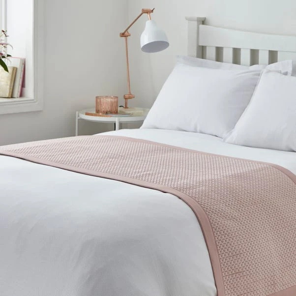 Incredibly soft to touch, this pinsonic blush pink runner will add texture to your room and sit well with a variety of designs. The embossed geometric texture is the ideal finishing touch accessory which can be machine washed for easy care.