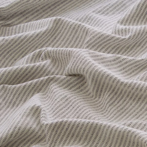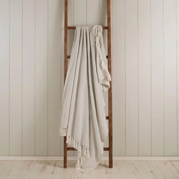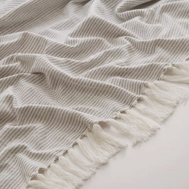 Designed with a soft stripe design in a grey and white colourway, this machine washable throw has a tasselled edge that will add some texture to any room of the house. Hand woven from recycled polyester and cotton fibres, this machine washable throw will add a soft touch to your home, while looking stylish.