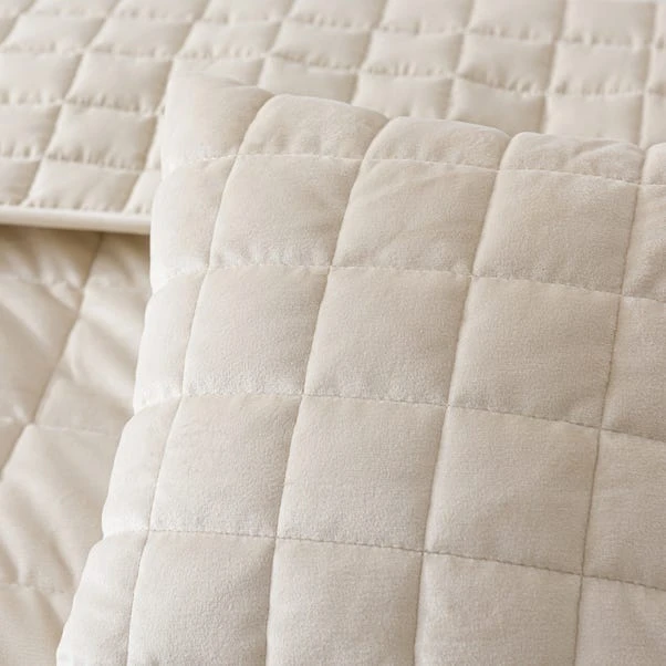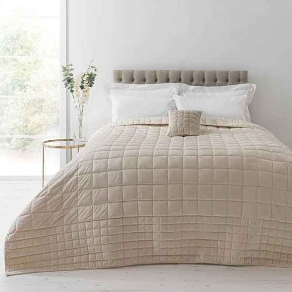 Complete your stylish bedroom setting with our Velvet Square bedspread, crafted from a sumptuous velvet with an exquisitely soft texture. This luxurious, quilted bedspread is embroidered in a square pattern for a contemporary look. The gold tone wonderfully complements a range of bedroom styles and looks fabulous paired with complementing bed linen available separately. The bedspread is available in two sizes.