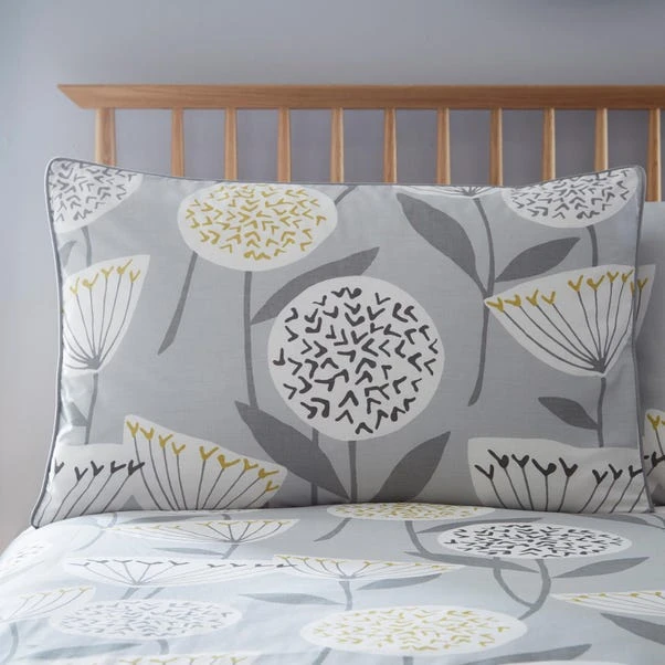 In varying grey tones, this duvet cover set is printed with a dandelion design and offers a geo patterned reverse. With pillowcase/s included, the set has been made from a choice of strong polycotton or cotton that has been finished with a soft handle to provide increased comfort. This set is available in a choice of sizes.