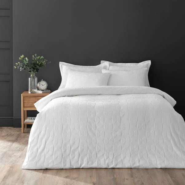 Made from soft and breathable, pure cotton, this oxford pillowcase features a modern, raised, geometric design to help make your bedroom a restful and relaxing haven. The woven jacquard design in white will add a contemporary texture and style to any bedroom. The duvet cover is then finished with a secure button fastening to keep the cover on the duvet while in use. Add the coordinating oxford pillowcases for a layered hotel look.