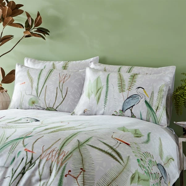 Featuring exotic and majestic birds gliding through aquatic foliage in a soothing and harmonious print, the Aaliyah duvet cover set is made of 100% cotton with a 200 thread count making this duvet set ultra-soft to the touch. With clear button closure for easy removal, this set will add a pop of colour to your bedroom and a stylish look and feel.