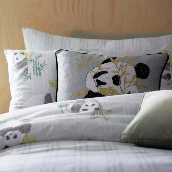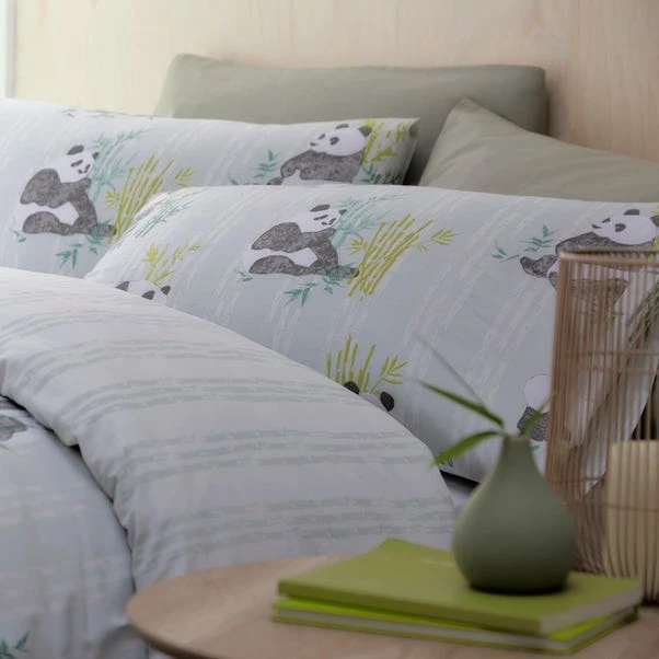Featuring an adorable hand-drawn giant panda print over a grey palette with alternative bamboo stem stripe patterned reverse, this delightful duvet cover and pillowcase set is crafted from a soft and durable polycotton fabric for a snuggly finish.