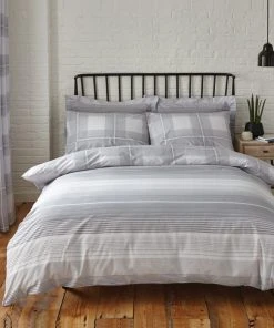 Dunelm Colville Grey Check 100% Brushed Cotton Reversible Duvet Cover And Pillowcase Set